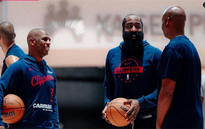 泪目!哈登保罗同框训练,快船首发确定4人:比尔受优待